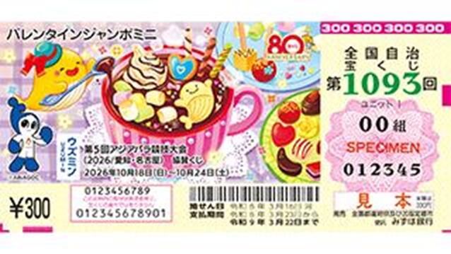 第1093回全国自治宝くじ「バレンタインジャンボミニ」 - 発売期間:2026年2月3日~2026年3月6日
