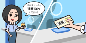 組と番号の上5ケタが同じで下1ケタが連続した番号のものを言います。1袋10枚セットで購入すると、下1ケタの番号には0~9までの数字が入ります。