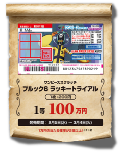 (ワンピーススクラッチの当せん確率については、宝くじ公式サイトでは販売枚数の発表がされていないため、おおよその確率となります)